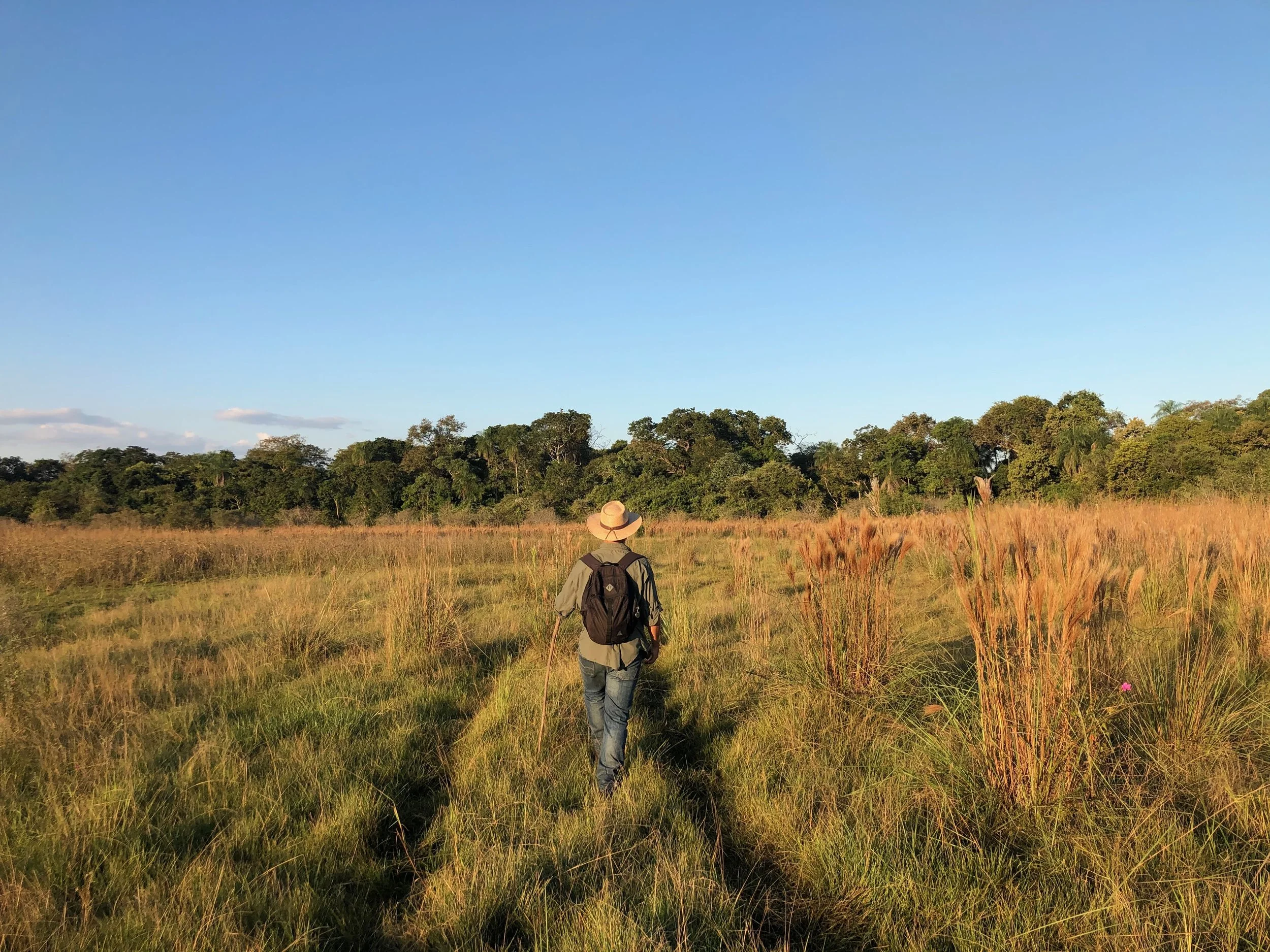 Caminhar pelo Pantanal é entrar em sintonia com a natureza em seu estado mais puro. As trilhas percorrem áreas de mata, campos e margens de rio, revelando detalhes que passam despercebidos à distância — pegadas frescas, sons sutis, movimentos na vegetação. A cada passo, o ambiente se revela de forma íntima e silenciosa, conduzindo a uma experiência de observação profunda, conexão e descoberta.